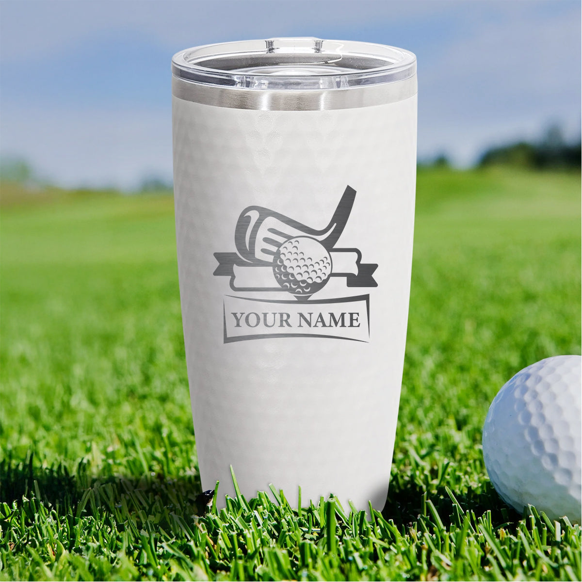 Custom Golf Tumbler with Name – Personalized Engraved Golf Ball and Club Mug, Gift for Golfer, Coach, or Golf Lover