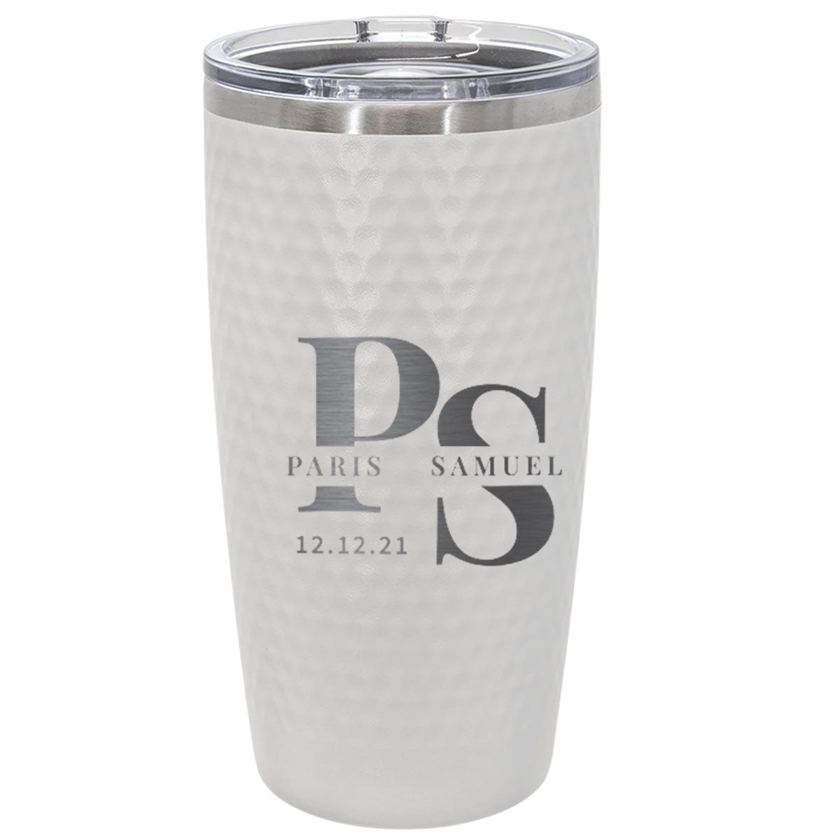 Celebrate your love story with this elegant 20oz personalized tumbler, engraved with two initials, names, and a special date. Whether you're gifting it for an anniversary, engagement, wedding, or just because, this custom tumbler is both stylish and sentimental.